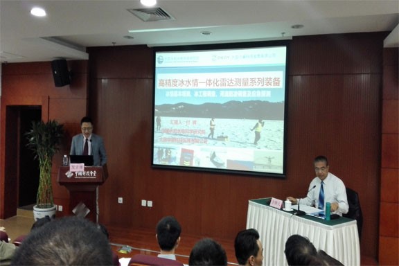 峰會會場內,中國水利水電科學研究院付輝博士做了題為《高精度冰水情一體化雷達測量系列裝備》的報告,向與會專家就中國水科院與大連中??萍及l展有限公司冰水雷達技術創新合作成果做了專題報告,報告引起與會專家和業內人士廣泛關注。