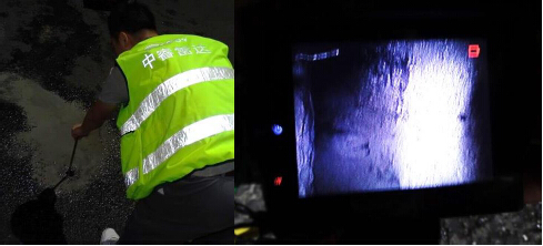 19對探測發現的一處大型空洞災害點進行釬探并采用電子內窺鏡檢查地下空洞內部情況。
