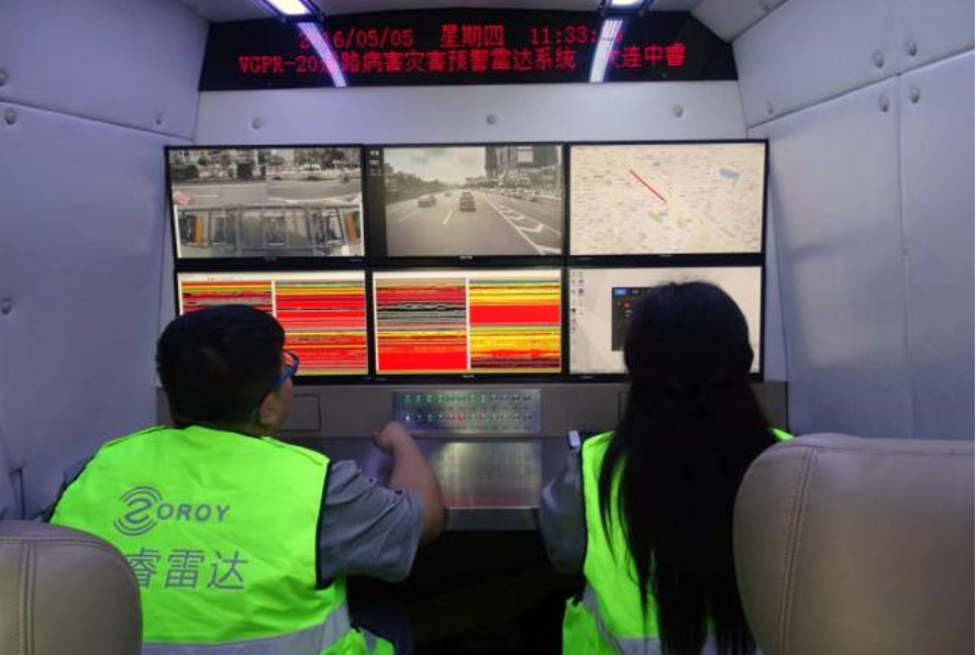 深圳市寶安區,去年以來,發生多次道路塌陷災害,為有效防范和避免塌陷災害事故的發生,2016年5月上旬,趕在汛期到來前,寶安區公路管理中心組織所屬道路養護單位與大連中睿科技發展有限公司合作,采用中睿VGPR-20型車載道路病害災害預警雷達系統,對轄區道路進行了針對道路塌陷災害隱患的雷達全覆蓋探測作業。探測路段包括寶安大道、西鄉大道、新安六路、湖明路、裕安路、海天路、金科路、甲岸南路,探測道路里程35公里。根據外業雷達普查探測成果數據,進行了數據處理和解釋分析,對發現的災害病害疑似點位進行了現場復核加密精探詳查,共探測發現道路空洞塌陷病害災害疑似點位17處,取得各個病害災害點位的詳細數據,并進行了風險評估,為防災工程處置提供依據。