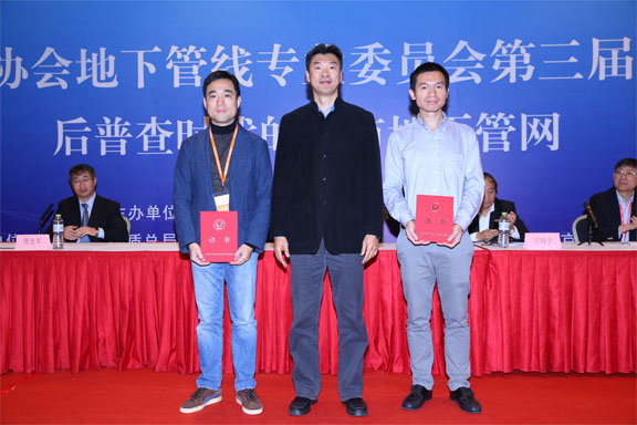 大會頒布了中國城市規劃協會地下管線專業委員會成立二十周年“精圖杯”有獎征文論文獲獎名單,大連中??萍及l展有限公司發表的論文《車載陣列雷達在道路塌陷災害預警探測中的技術應用》榮獲一等獎(作者:崔海濤、陳潔、白旭、李民),中規協地下管線專業委員會主任委員溫宗勇為一等獎獲獎者頒發證書和獎金。